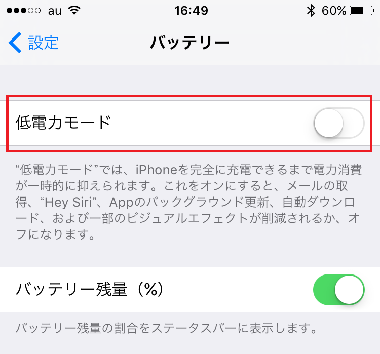 「うわっ、めんどくさそう」と思った皆さん、安心してください。iPhoneには、これを一括で切り替えられる機能「低電力モード」が搭載されています。