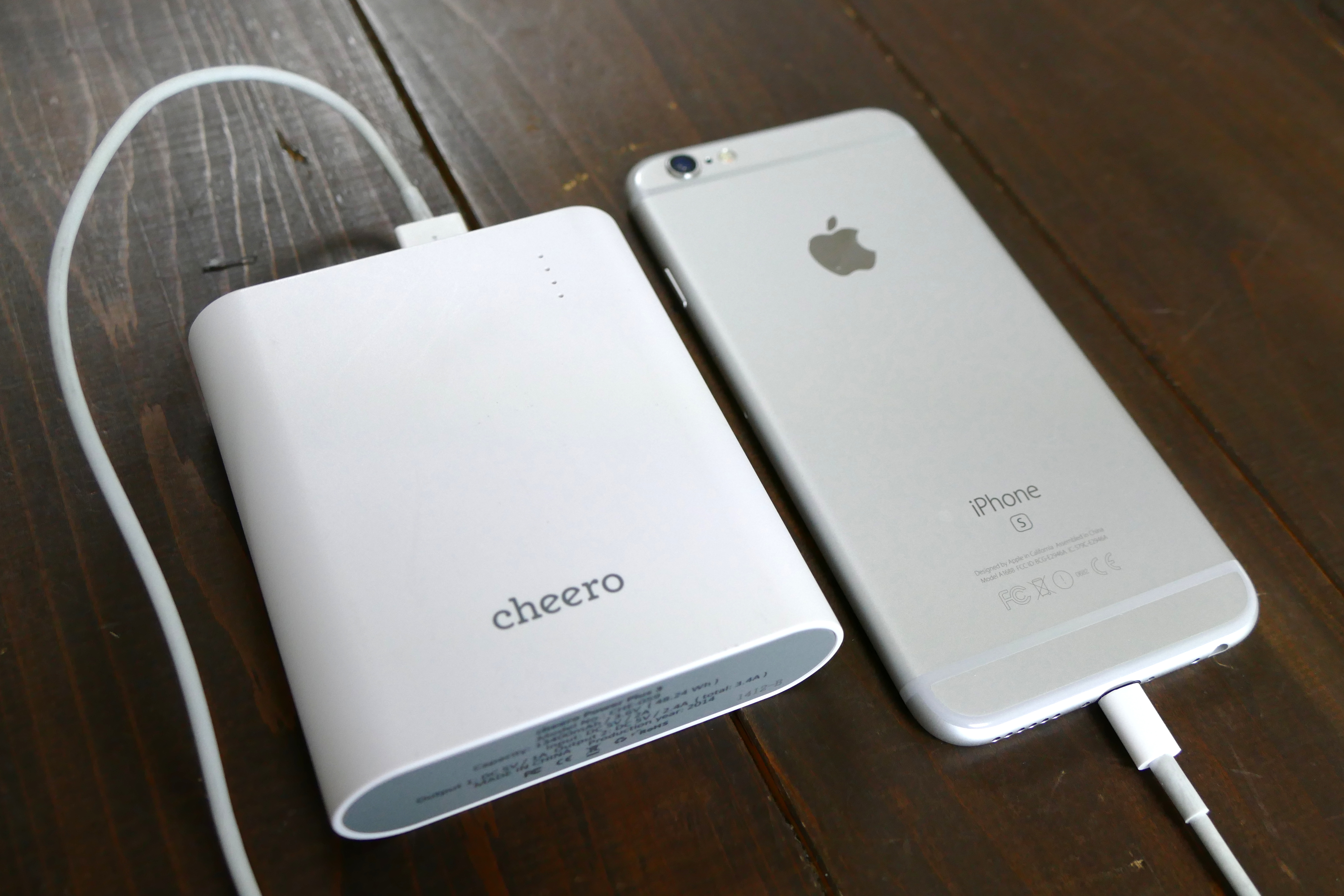 モバイルバッテリーを持っておけば、外出先でもiPhoneを充電できます。オススメはcheeroの大容量モバイルバッテリー。10000mAh以上あれば、フル充電2~3回くらいへっちゃらなので、ヘビーユーザーにもオススメです。