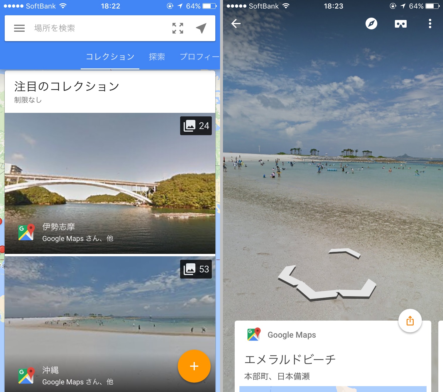マップアプリで紹介したストリートビュー機能だけに特化した「Googleストリートビュー」アプリは、ストリートビューで見られる場所が探しやすくなっています。さらに、iPhoneで撮ったパノラマ写真や「RICOH THETA」などの全天球カメラで撮った写真も投稿可能です。”地図”というよりは”空想旅行”を楽しむのに良さそうです。