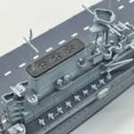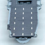 飛行機を格納庫から甲板に移動させる大型甲板に3か所あるエレベーターは、稼働(下がった)状態も選べます。今回は艦尾寄りの一基のみを下げた状態にしました。