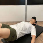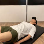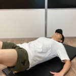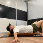 ・ストレッチポールを肩甲骨の下辺りに当たるように仰向けに寝る