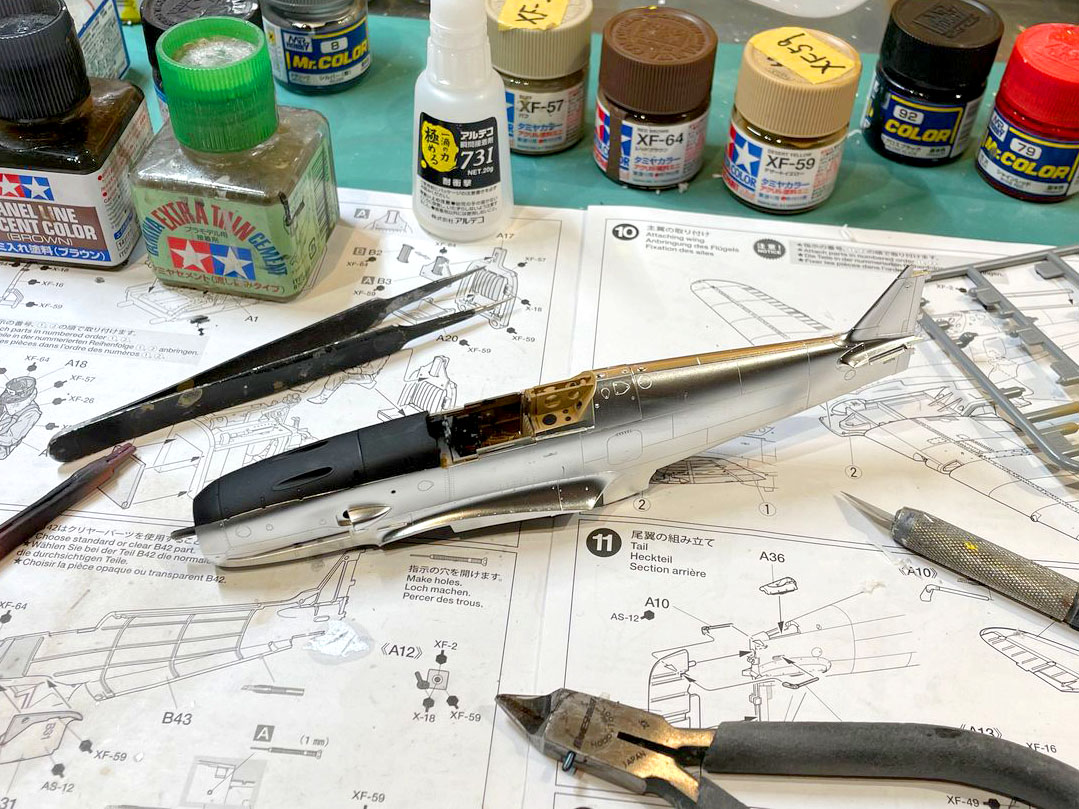 塗装では再現できないクロームな質感を再現したメッキ「飛燕」。難易度の高い迷彩塗装をデカールで再現できてしまうのが本キットの特徴ですが、より実機らしく仕上げるためには、やはり塗装は欠かせません。今回は飛行機モデルの見せ場、細部まで再現されたコクピットを塗装でリアルにしていきます。