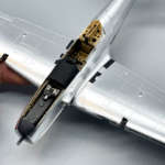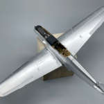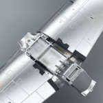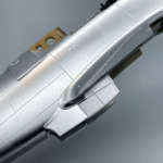 無塗装の機体を製作する場合、塗装のみでもパネル単位で微妙にトーンを変えることでリアルな金属感を再現できます。作例では胴体下面のラジエターを塗装で質感を変えています。