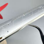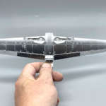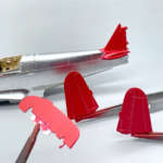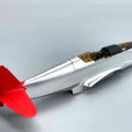 そこでここはあえて、つや消しシルバーで塗装しています。垂直尾翼の方向舵も同様の構造ですが、塗装されているので特に質感を変える必要はありません。