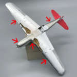 ▲胴体下面のラジエター側面は銀(Mr.カラー8番シルバー)で塗装することで材質の違いを再現