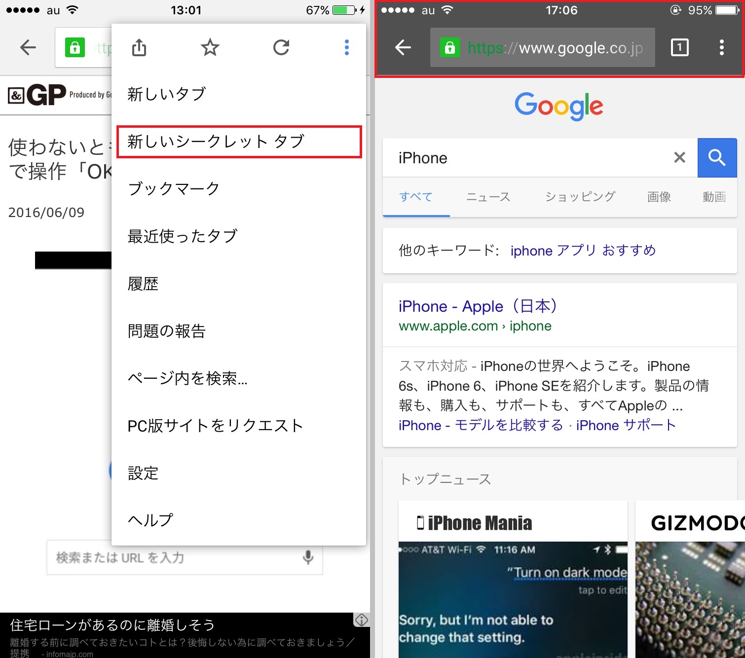 3.「シークレットタブ」なら検索履歴が残らない
