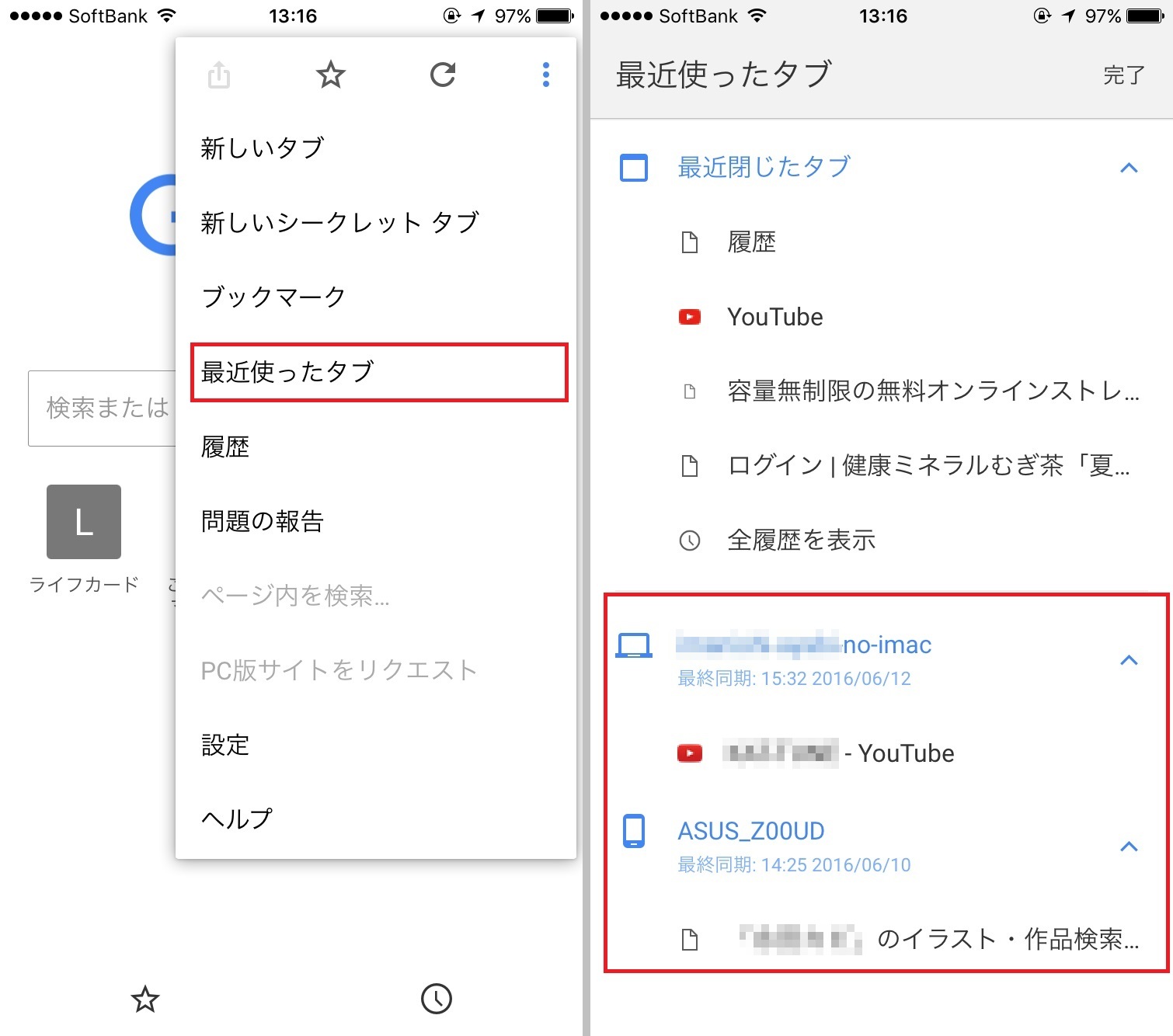 「メニュー」内の「最近使ったタブ」では、最近閉じたタブを確認できます。誤ってタブを消してしまったときなどに使うと便利な機能ですが、複数デバイスでChromeを利用している場合にも役立つのです。