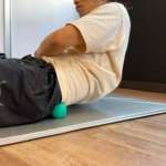 ▼腰痛セルフケア「お尻でボールをコロコロ」
