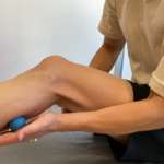 ・膝裏辺りにボールを当て足首方向にゆっくり転がしていく