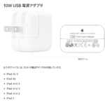 ▲10W USB電源アダプタ。出力は5.1V/2.1A。Apple公式ヘルプページより