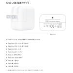 オンラインのApple Storeでは、上記のうち5W、12Wの2種類が取り扱われていて、さらにUSB Type-Cポートを備えた20W、30Wの充電アダプタが展開されています。最低でも12W以上。MacBookの充電と共用にしたり、USB Type-CーUSB Type-Cケーブルでの充電を利用する場合には、20W以上のアダプタを選択するのが良いでしょう。