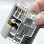 支援船は司令船と違いマイラーフィルムは使われていません。通常のシルバーと白で指定通りに塗分け、デカールを貼ります。その後、後部の主エンジンノズルと機体4箇所に姿勢制御用のエンジンノズルを取り付けます。最後にエッチングパーツで再現されたハイゲインアンテナ(地球との交信に使用)を取り付けます。
