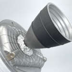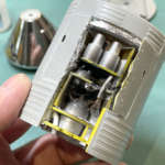 ▲メインエンジンはつや消し黒とガンメタで塗装。取り付け基部にはアルミホイルを張り付けて断熱シートを再現