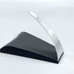 キットには専用の、アルミ材とプラを使った、質感のある展示スタンドが付属しています。ベースを黒に塗装して仕上げます。画像は塗装が完了した司令船と支援船を借り組みした状態。宇宙船の模型はデスクトップモデルが良く似合う。