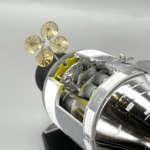 ▲支援船の機体4か所に取り付けられている姿勢制御用エンジン。ノズルはチタンゴールドで塗装