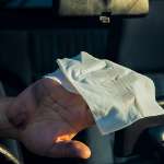 佐藤さん:ウインドウの表側は前回仕上げたので、裏側はウエットクロスで拭いてあげましょう。プロスタッフ「クルマまるまる おもいっきりクロス」(参考価格438円)は、植物由来の洗浄成分でベタ付かず、サッパリした使い心地。内装だけでなく外装にも使えるので、グローブボックスに常備しておくといいと思います。