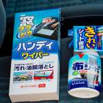 佐藤さん:シートの汚れが気になる方は布シート用のクリーナー、ソフト99「布シート&マットクリーナー」(写真右、参考価格1043円)もオススメ。有機溶剤不使用で、布地に負担をかけずにクリーニングが可能です。手アカや皮脂、タバコのヤニ、飲食物のシミなどを落とすだけでなく、抗菌・消臭効果もあります。持ち手付きのウェットクロス、「窓フクピカハンディワイパー」(写真左、参考価格1043円)は、内窓の奥まで手が届きづらい車種で大活躍してくれます。