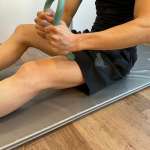 ・ウェーブリングを膝方向に流すように筋肉をほぐしていく
