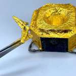 下降部船体のブランケットシートは、金色の部分と黒の部分があります。金色の部分は、かなり赤みが強いゴールドといった色味なので、タミヤラッカー塗料のクリアーオレンジにクリアーイエローを20%程度加えたカラーで塗装することで、金箔と同等の質感を再現できます。