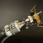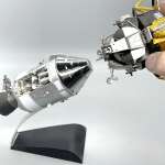 完成した月着陸船を司令船とドッキング(接着)します。キットには接続用のパーツに加えて、司令船側のドッキングユニットのパーツも付属しているので、LMとそれぞれ別に展示することも可能です。
