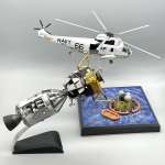 ▲完成したアポロ13号の、後ろは製作中の同じドラゴンから発売されている回収用ヘリと着水した司令船がセットになったジオラマキット