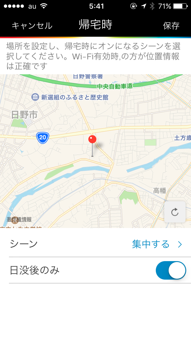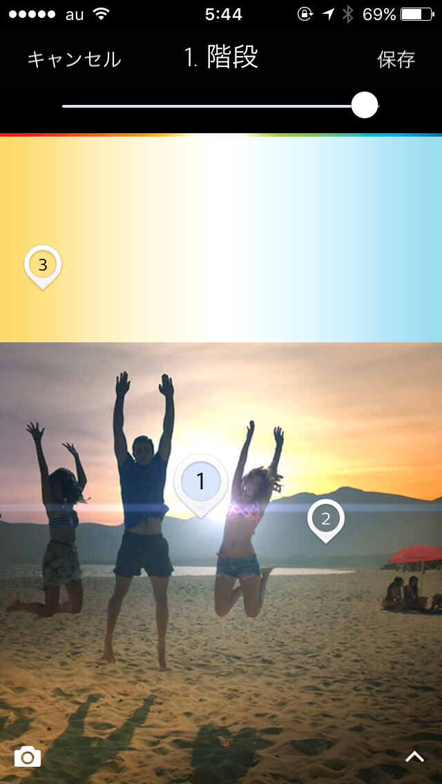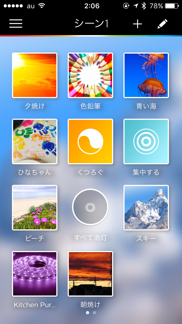 「シーン」には、スマホで撮影した写真を追加する機能があります。最初は「何のために?」と思いましたが、これがビックリ。写真を選択して照明への割り振りを選ぶと、写真の色を再現してくれるのです。だから、「この前言った旅行で見た海がすごく綺麗だったよ」とか「昨日の朝焼けがすごかったんだ!」といった写真を撮っておけば、照明で他人に共有できるということ。思い出話をするときにでも使えば、話題がさらに盛り上がるでしょう。