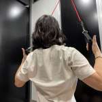 ラットプルダウンとは違い、脇を開いた状態で引きます。それによって、背中上部あたりにしっかり効かせることが可能となります。1セット15~20回程度を2~3セット程度行ってください。