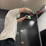 ▲行うトレーニングに合わせてドアの上下にセットする。チューブを引っ張り、固定されていればOK