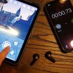 次にゲームです。普段楽しんでいる『原神』というアクションRPG。画面にある攻撃ボタンをタップして、ストップウォッチで剣を振る風切音が聞こえ始めるまでの遅延を測定。ゲームの音声なので基準は0秒ではありませんが、同じ『原神』のPS5版で測定したところ約35ms(0.035秒)だったので、この数字を目安にします。