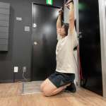 こちらは上腕三頭筋(二の腕)のトレーニングとなります。上腕というと二頭筋に目が行きがちですが、ここがプヨプヨにたるんでいるのと、キュッと引き締まっているのでは全体の印象に差がつきます。こういう部位こそしっかりと鍛えましょう。
