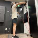 チューブを押し上げる際は、肩の力で上げることを意識してみてください。1セット15~20回程度で2~3セット行ってください。