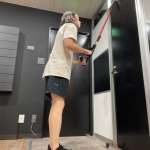 ▲行うトレーニングに合わせてドアの上下にセットする。チューブを引っ張り、固定されていればOK