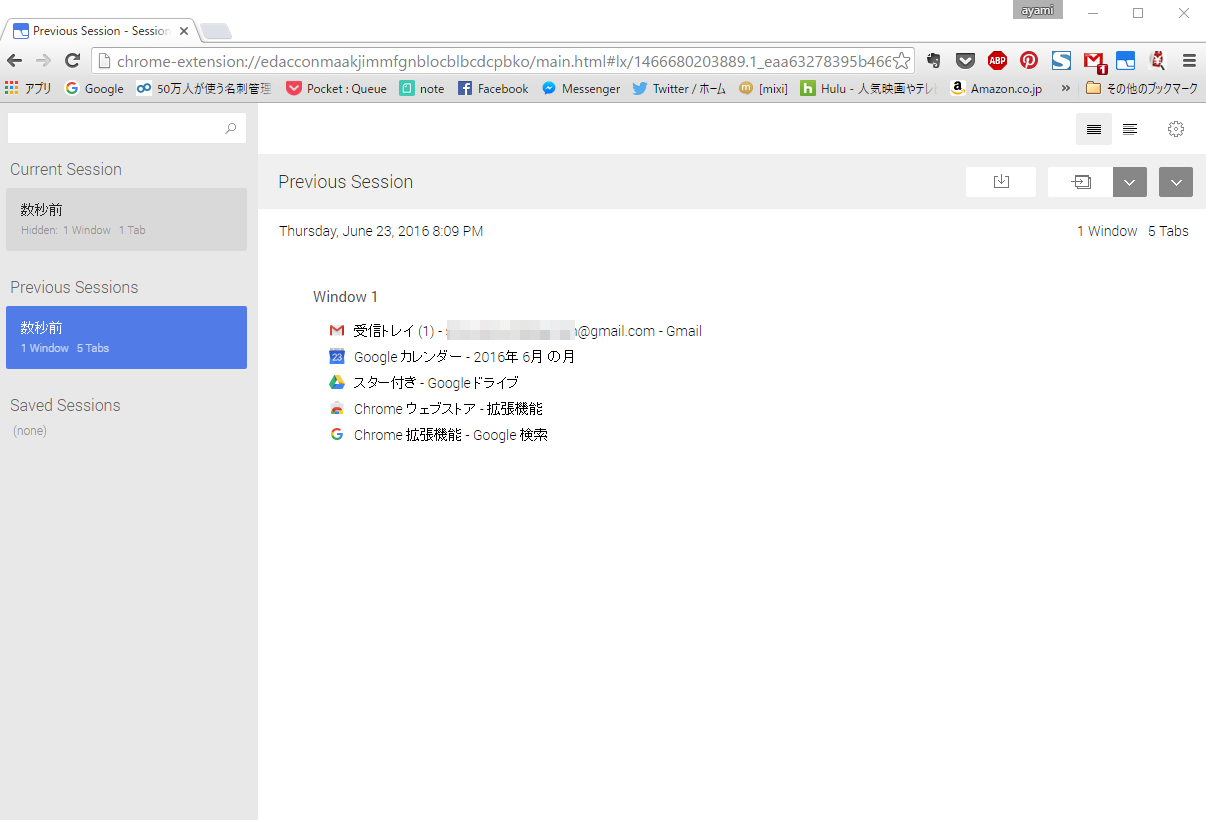 3.ウインドウを間違えて閉じても「Session Buddy」があれば問題なし
