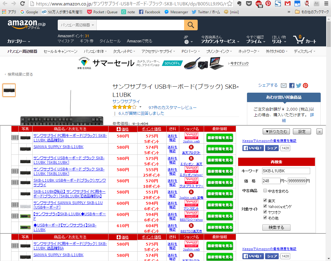 価格.comやAmazon、楽天ブックスなどのショッピングサイトを閲覧すると、自動的に他の通販サイトも検索して、安い10件を画面下部に表示するのが特徴。また、テキストを選択して右クリックで価格を比較することも可能です。