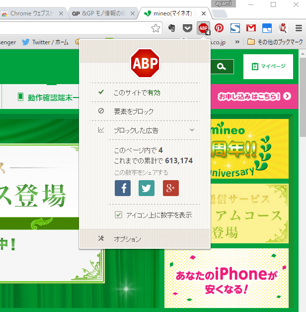 「Adblock Plus」は、バナー広告、YouTubeビデオ広告、Facebook広告、ポップアップ広告をブロックする拡張機能。とくに設定をしなくても機能がオンになるので、意識することなく使えます。サイトによってブロック機能をオフにすることも可能です。