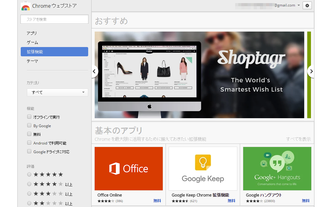 Chromeの拡張機能は「Chromeウェブストア」上で配信されています。