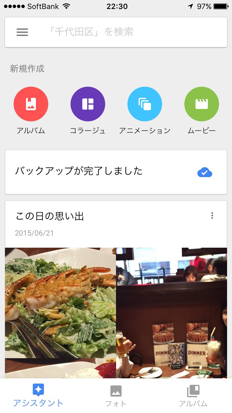 Googleフォトの「アシスタント」には、保存された画像や映像から、自動でアルバムやムービー、アニメーション、コラージュを作成してくれる機能があります。