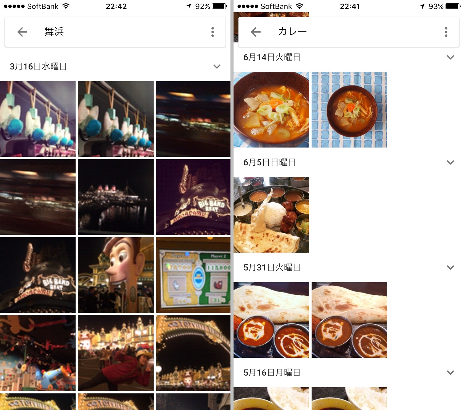 また、撮影場所や日時だけでなく、「カレー」や「犬」などのキーワードでも探せます。