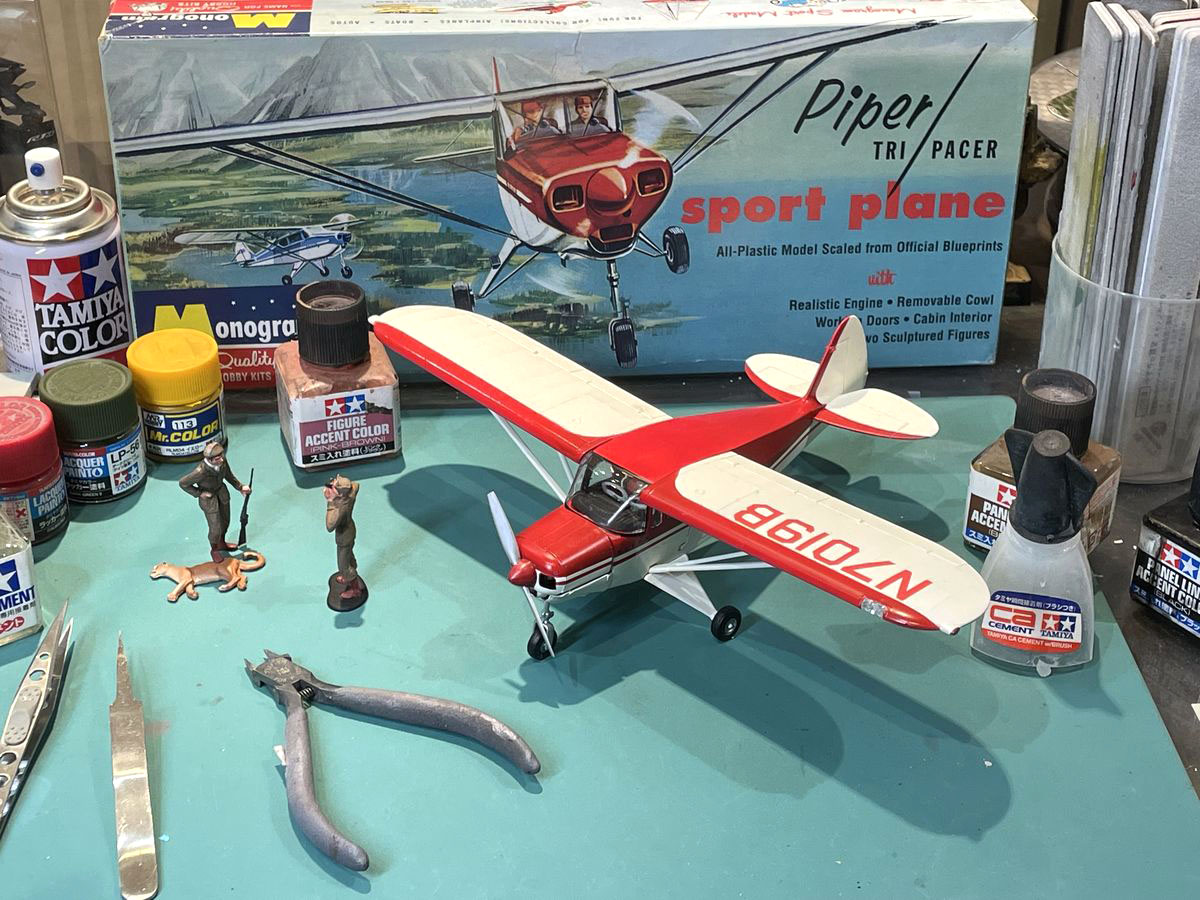 1950年代にアメリカのモノグラム社から発売されていたパイパートライぺーサー製作の最終回。機体はもちろんですが、味わい深いフィギュアも塗装していきます。