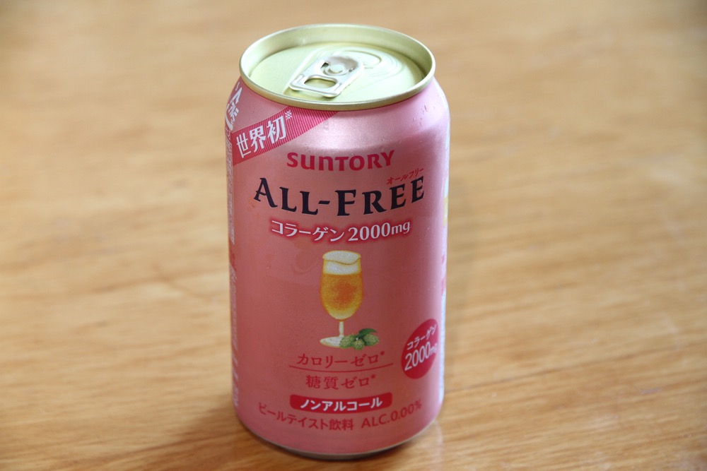 ちょっと変わり種のこちらは、サントリー オールフリー コラーゲン。そのままでは吸収されにくいコラーゲンを低分子化したコラーゲンペプチドが2000mg入っています。アルコール、糖質、カロリー、プリン体もゼロ。