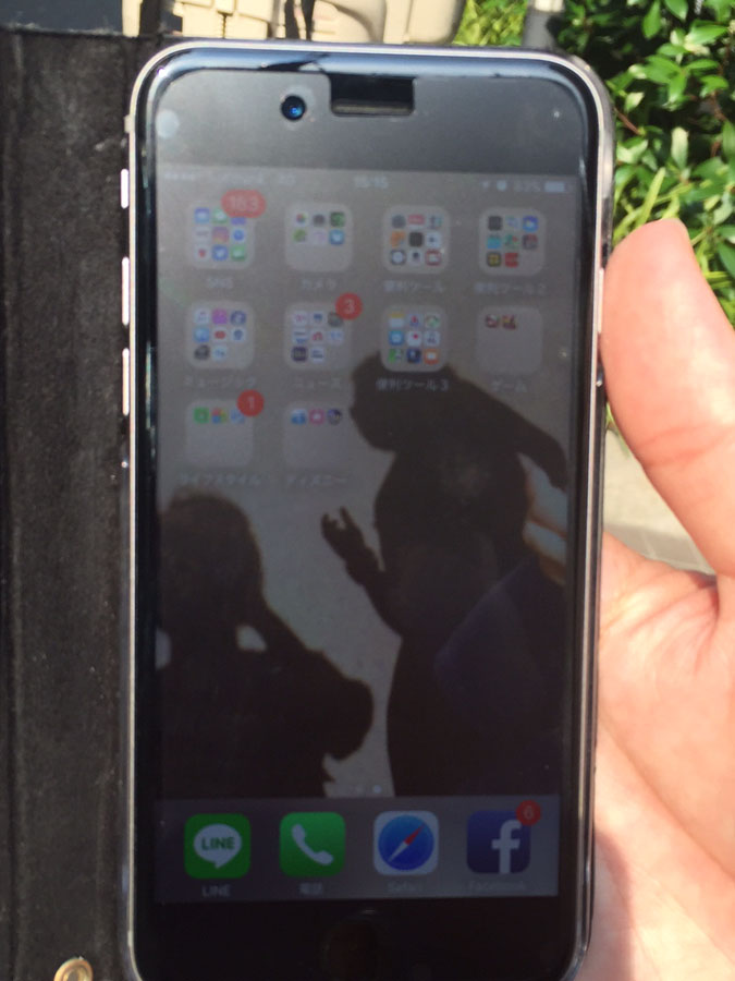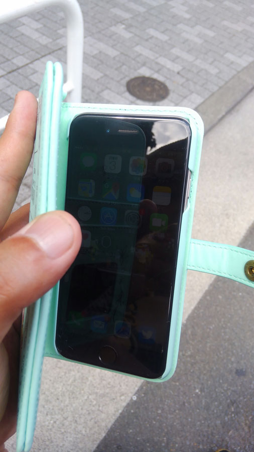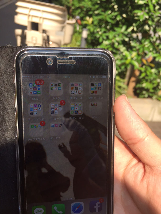 皆さん、外でまぶしい時に、どういうアクションを取りますか? 日射しのあるところにバッと出たら、思わず手でひさしを作る人も多いのでは。それと同じことを、iPhoneにもすればいいじゃん! ということで、何かないかと探したら…、あ、手帳型カバーだ! ということで、手帳型カバーを装着してみました。