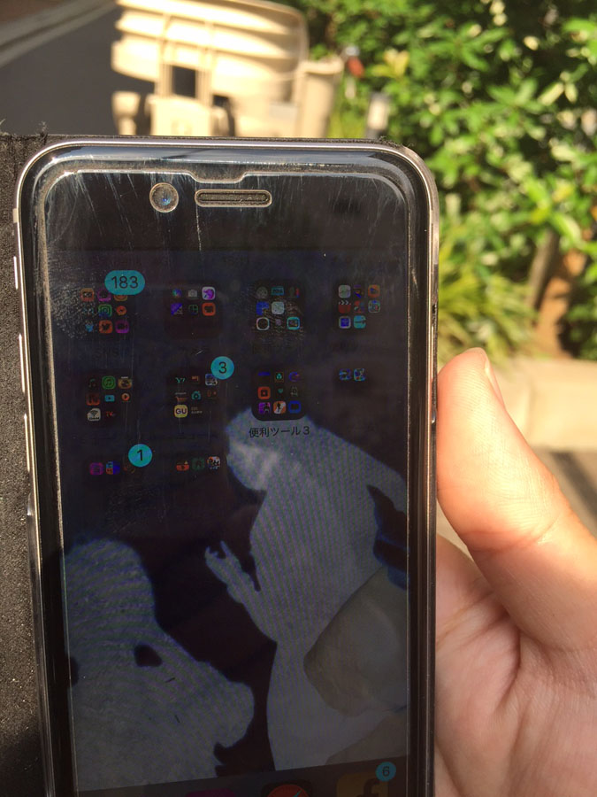 写真がイマイチで分かりづらいかもしれませんが、一番良く見えています。最近、手帳型ケースを使っている人が多いですが、もしかしてこの効果も狙って使っているんでしょうか。それぐらい劇的に見えづらさが改善されました