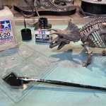 これにてティラノサウルスとトリケラトプスの塗装が完成! 次回はベースの塗装を仕上げて、スタンとエレンの格闘シーンの完成を目指します! 乞うご期待!