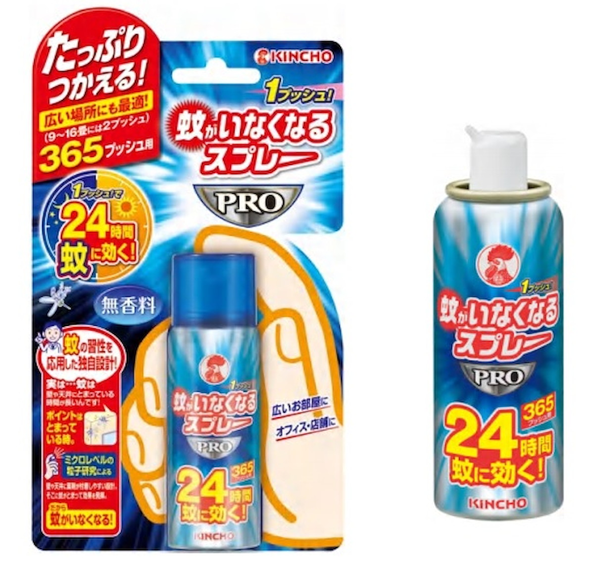 「蚊がいなくなるスプレーPRO」は、一部屋(4.5~8畳)に1プッシュすれば薬剤が壁や天井に付着し、24時間効果が持続するという画期的な製品。人々の暮らしに寄り添い殺虫剤の改良を続けてきた創業者の探究心が、脈々と受け継がれていることを感じさせる製品です。