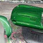 ▲メタリックグリーンの上からクリアーグリーンを塗装→乾燥→塗装と3回塗り重ねたボディ。メタリックグリーンの粒子感が消えて、深みのあるキャンディグリーンに仕上がった