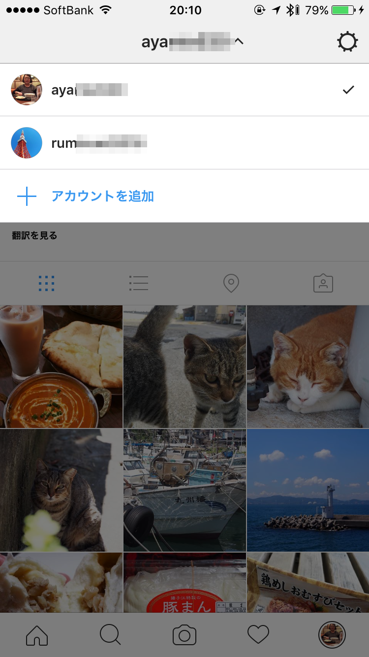 投稿する写真のテーマや、つながっている友だちに合わせてアカウントを使い分けたい場合、複数のアカウントを切り替えて使えます。