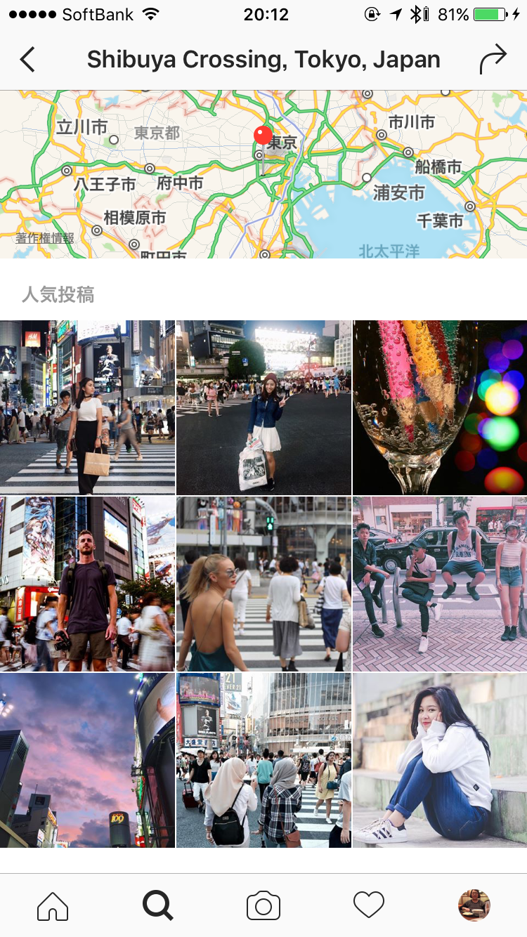 話題のスポットや飲食店などの位置情報で検索すれば、その場所で撮影されたほかのユーザーの投稿を閲覧可能。インターネットの記事や本には出ていないような最新の情報を調べることもできるので、情報収集に役立てましょう。