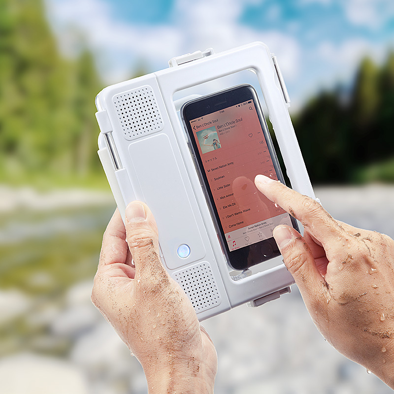 海や川辺で遊ぶとき、iPhoneから音楽を掛けながらくつろいでみてはいかがでしょう。また、普段は浴室で使えるので、無駄なく活用できます。