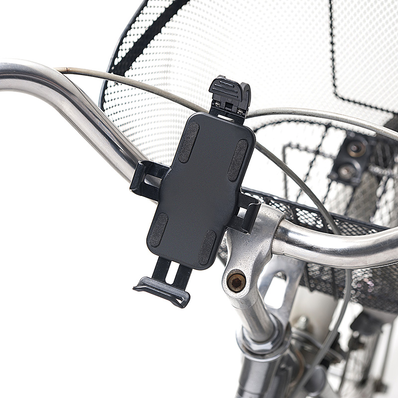 スタンドの角度は6段階で調節可能。持ち手にも使える