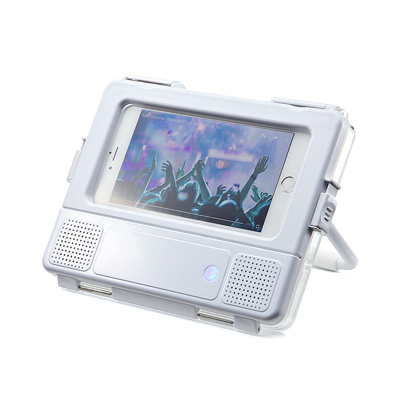 サンワダイレクトで販売するスマートフォン防水スピーカー「400-SP061」は、スマホを収納して使うスピーカー内蔵ケース。IP47の防水・防塵性能を備えており、水気や汚れがある場所でも使用できます。また、スマホを収納したままタッチ操作が可能。背面もクリア素材になっているため、収納したまま写真撮影も行えます。価格は5480円。